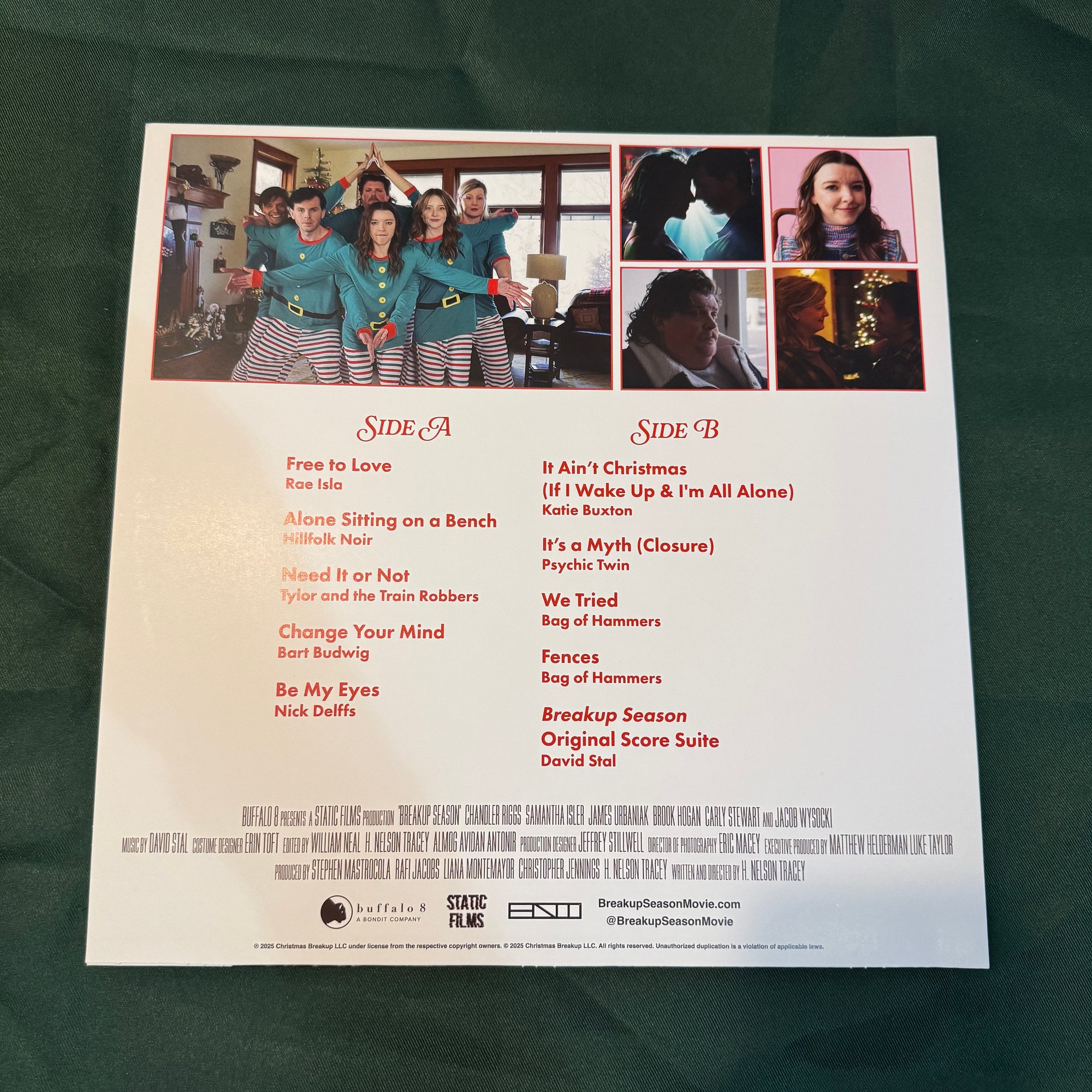 This 12 inch LP features all 11 songs from the film plus a selection of original score. Every track was mastered specifically for vinyl to ensure the best possible listening experience. The record includes music from Nick Delffs, Rae Isla, Psychic Twin, Bag of Hammers, Hillfolk Noir, Tylor and the Train Robbers, and more, along with two original songs written for the movie by Bag of Hammers, capturing the acoustic warmth, indie energy, and emotional tone that define the world of Breakup Season.